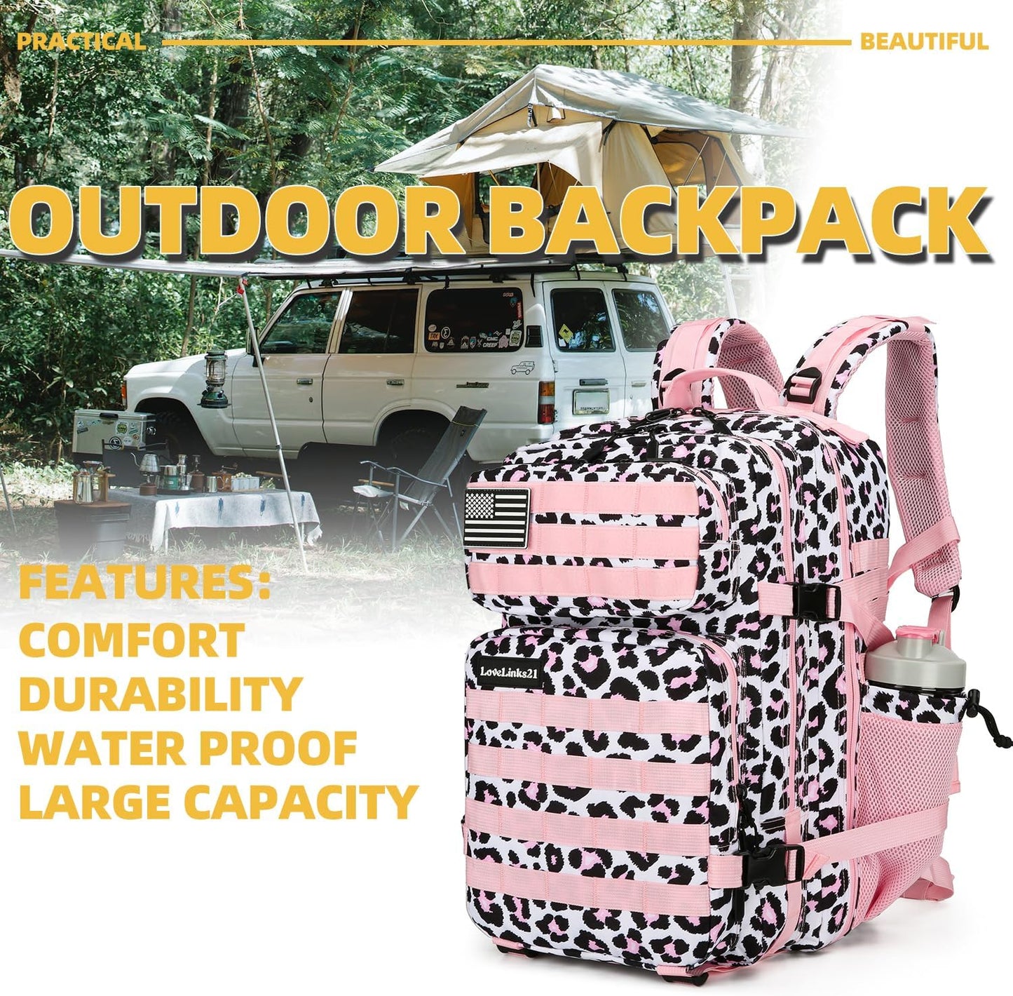 25L Tactical Backpack for Men Women Military Backpack Army Assault Pack Molle Backpack Small Bug Out Bag Travel Rucksack Daypack (Pink Leopard)