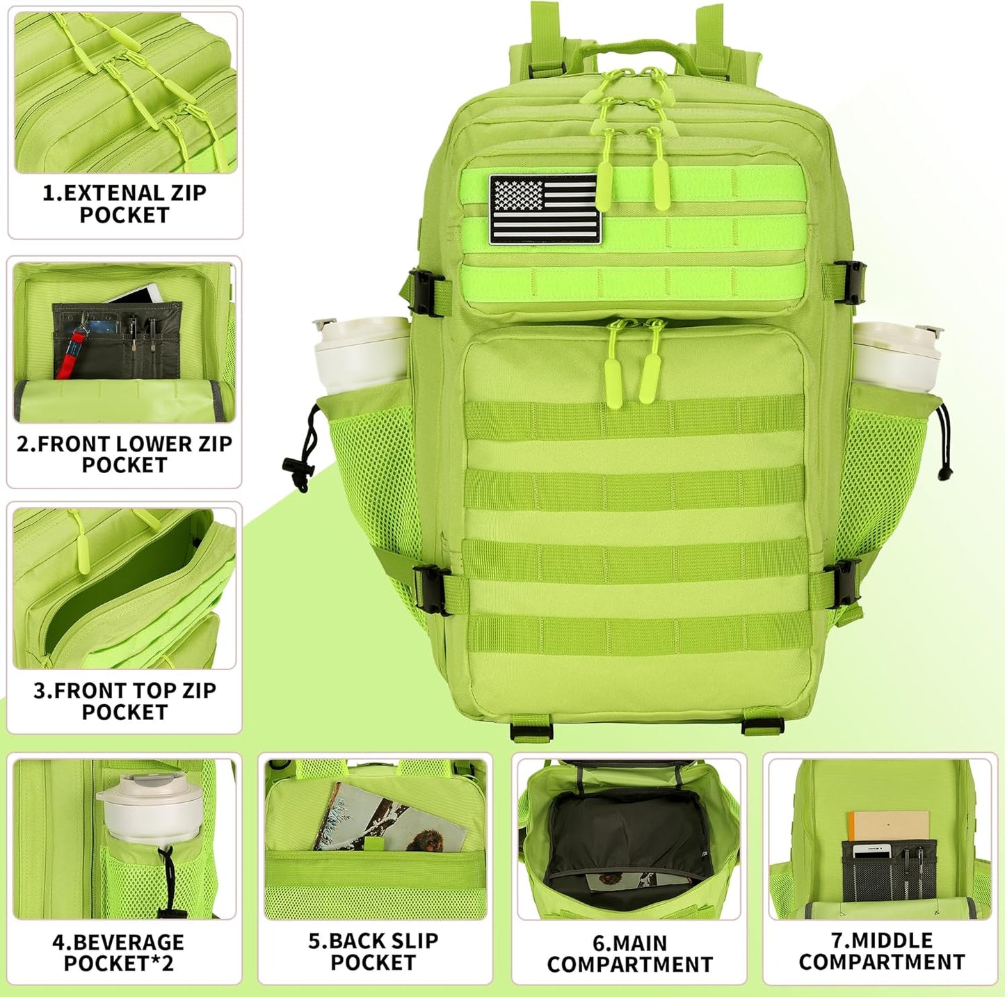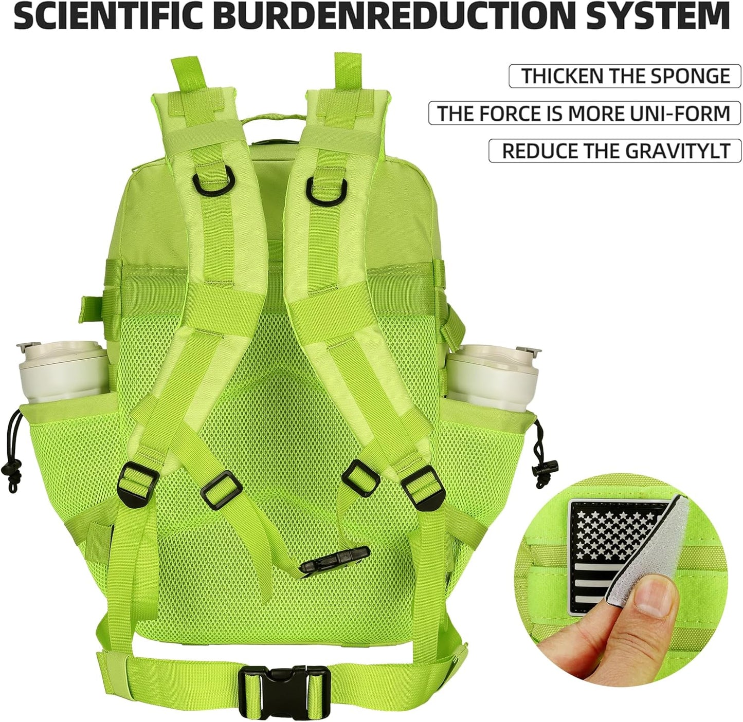 45L Tactical Assault Backpack 3 day assault pack with Molle Waterproof backpack Rucksack for Tactical Backpacks (Fluorescent Green)