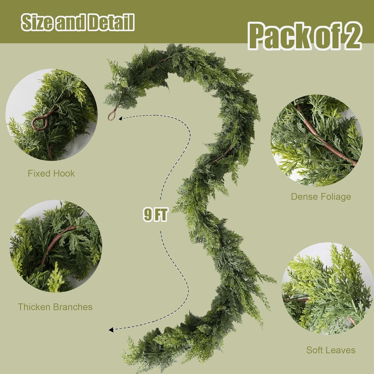 9FT Real Touch Norfolk Christmas Pine Garland Set of 2, Lifelike Artificial Bendable Greenery Garland for Front Door, Mantle, Staircase, Windowsill Indoor Outdoor Christmas Decorations