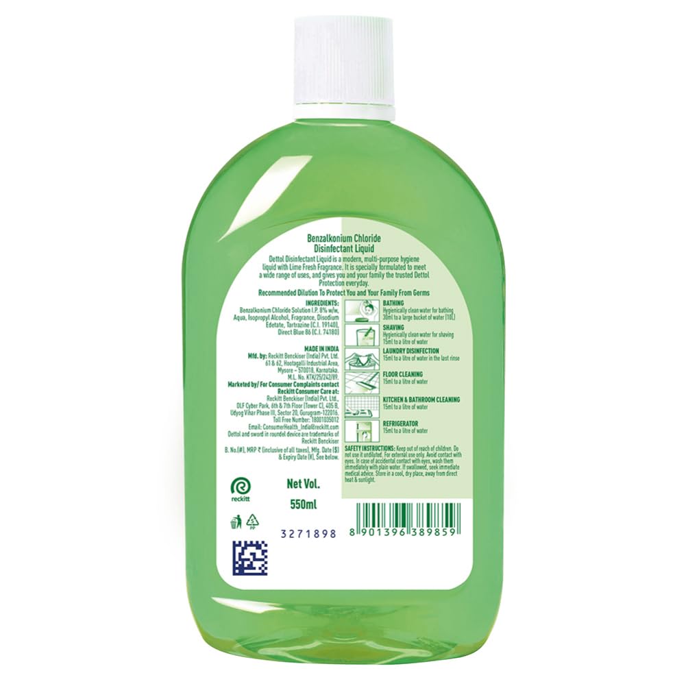 Dettol Liquid Disinfectant for Floor Cleaner, Surface Disinfection, Personal Hygiene (Lime Fresh, 550ml) (Pack of 3)