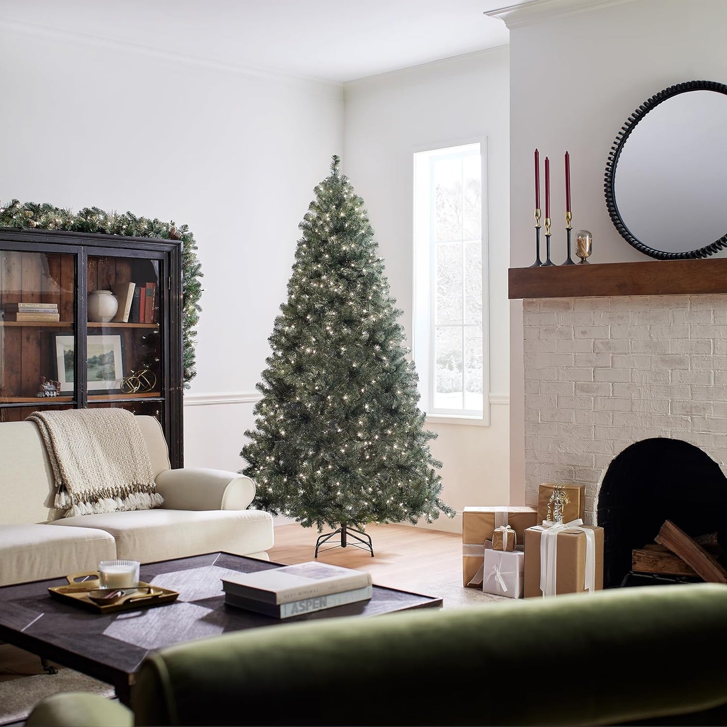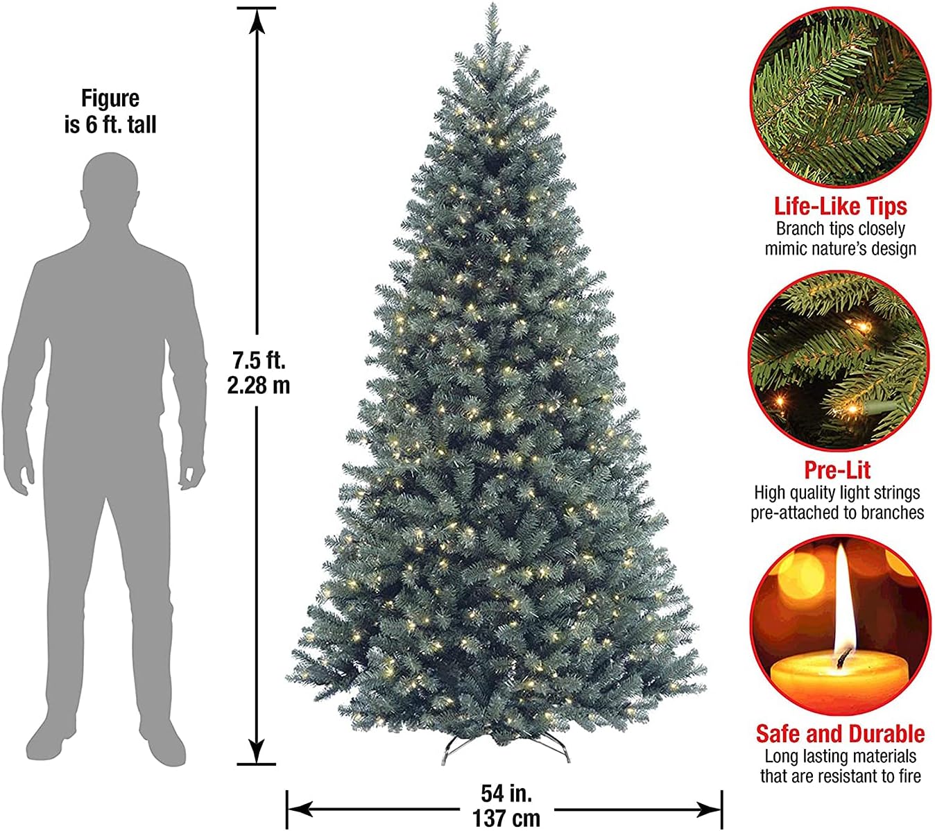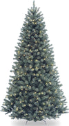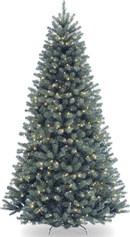 National Tree Company Pre-Lit Artificial Full Christmas Tree, Blue, North Valley Spruce, White Lights, Includes Stand, 7.5 Feet