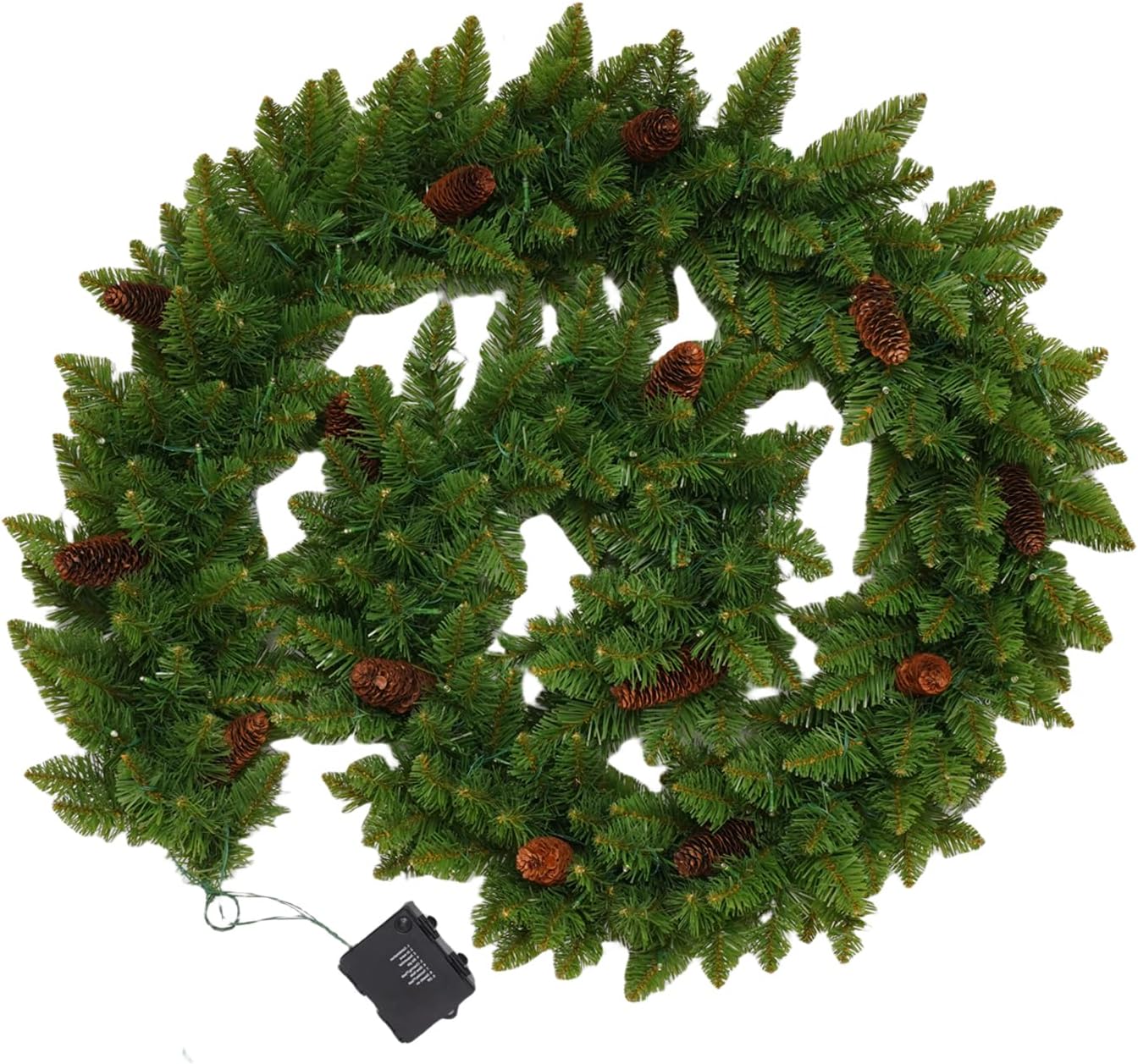 Pre-lit 9ft Christmas Garland with Lights, Garlands for Decoration Christmas with 243 Branches and 50 LED Warm Lights,for Mantle,Outdoor,Stairs Railing,Wall,Table,Indoor(Battery Operated)