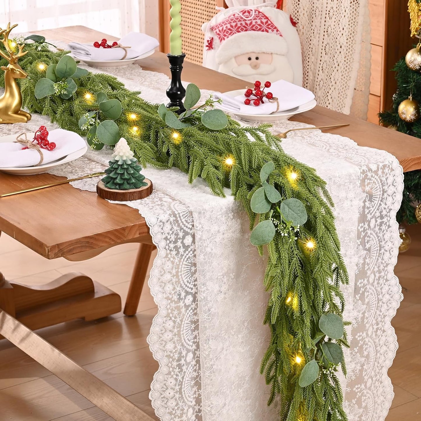 Waipfaru Christmas Norfolk Pine Garland with Lights,6FT Real Touch Pine Garland Christmas Decoration,Artificial Faux Cedar Garland for Christmas Table Fireplace Mentle Wall Home Decoration