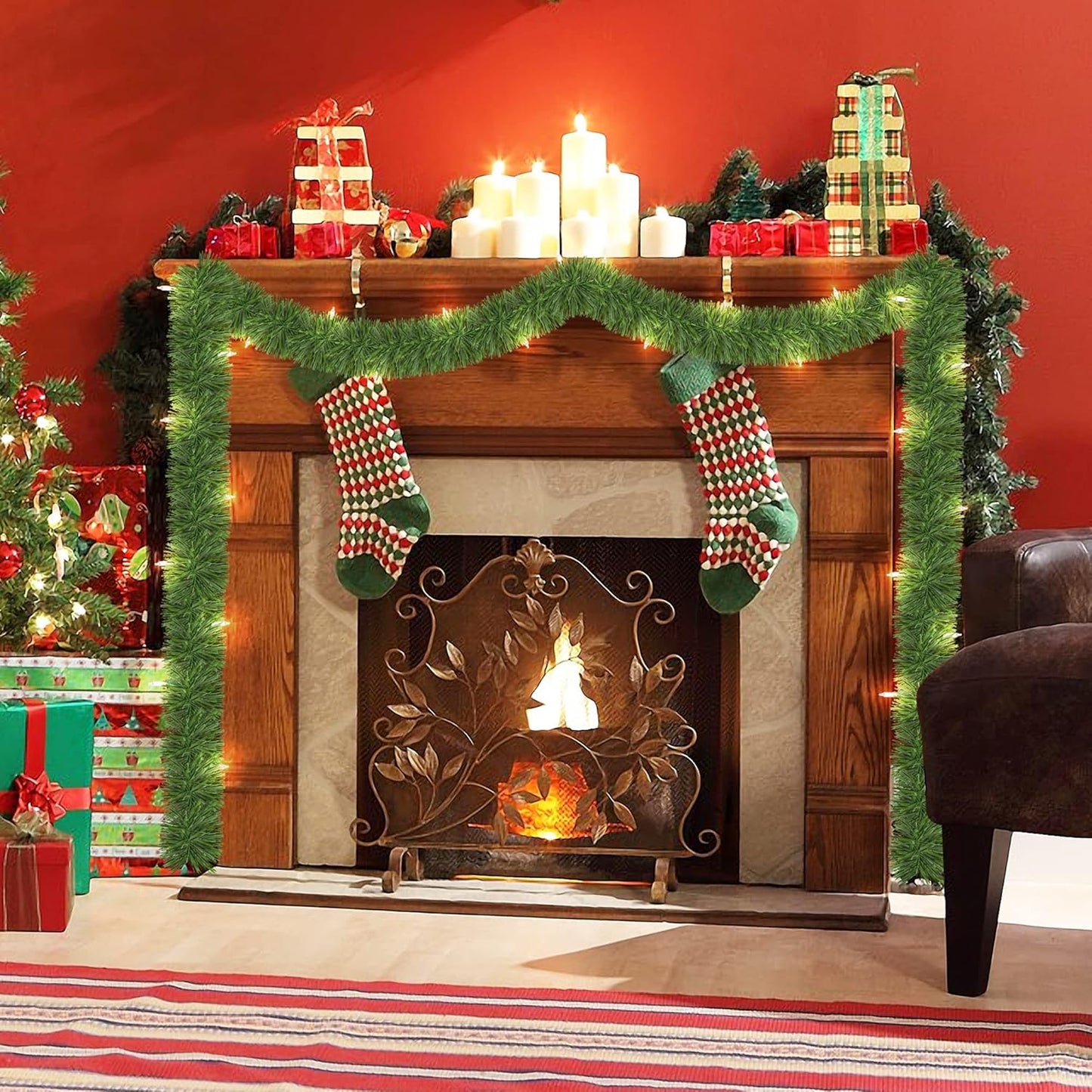 WATERGLIDE 49FT Lighted Christmas Green Garland with 100 Count Clear String Lights, Pre-lit Long Artificial Greenery Garlands, Plug in Holiday Decorative Lights for Indoor Outdoor Decor